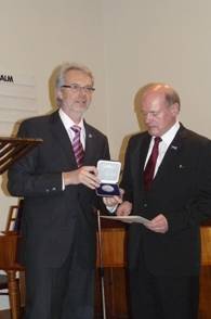Krämer nahm sie mit der Ergänzung an, dass es - nicht nur für einen Pfarrer - selbstverständlich sein sollte, sozial engagiert zu leben, er für sich darin nichts außergewöhnliches sehe und so die Medaille stellvertretend für alle freiwilligen und ehrenamtlichen Mitarbeiter entgegennehme.