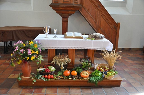 Auch in diesm Jahr wurde der Abendmahlstisch zum Entedankfest von Frau Desor und Frau Zeller wunderbar geschmückt.